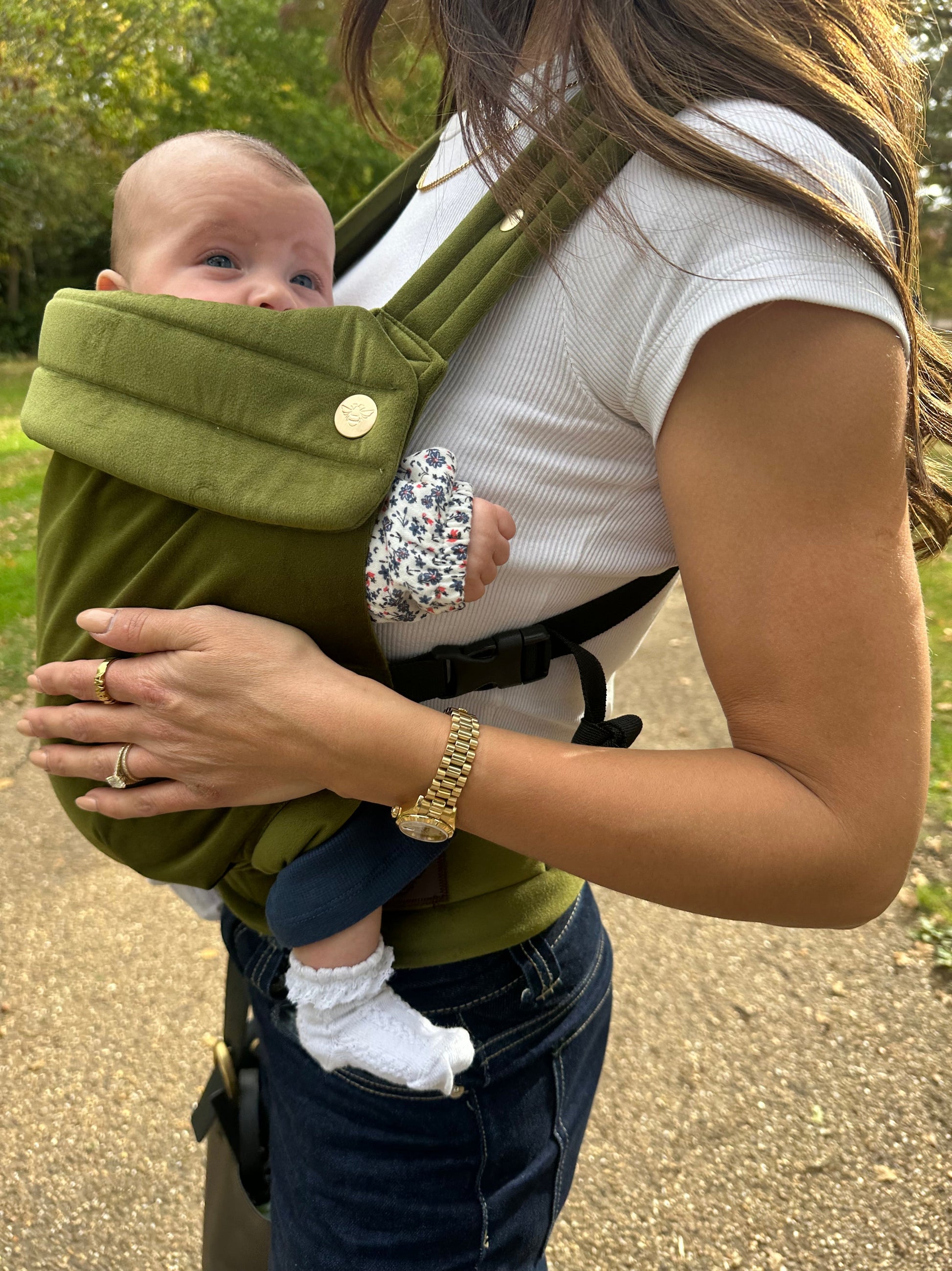 The Cedar Green velvet baby carrier combines timeless style with everyday comfort. Crafted from soft plush velvet, it offers a cozy feel for baby while remaining lightweight and supportive for parents. The rich cedar green shade adds an earthy, elegant touch, making it as beautiful as it is practical.Designed for easy adjustments , this carrier is a perfect blend of luxury and functionality- ideal for parents who value both comfort and style .